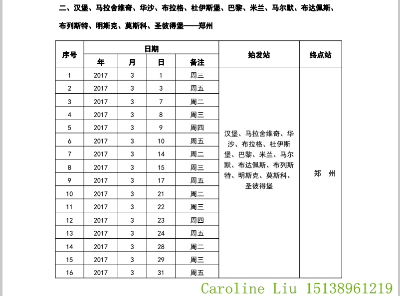 鄭歐國際貨運班列是鄭州國際陸港主要的對外開放平臺,2013年7月18日開行首班班列,目前每周開行2班,目的地覆蓋歐洲12個國家32個城市。預計到2020年,集裝箱年吞吐量達120萬標準箱。 精品路線: 上海/廣州/深圳/寧波/天津/青島—鄭州—華沙/漢堡鐵路集裝箱運輸 全國—鄭州—華沙/漢堡鐵路集裝箱貨物運輸專線,鄭州方圓1500公里免費上門提貨,開展整箱、拼箱業務,提供門—站、站—門、門—門服務,可分撥到歐盟國家及地區客戶的門。