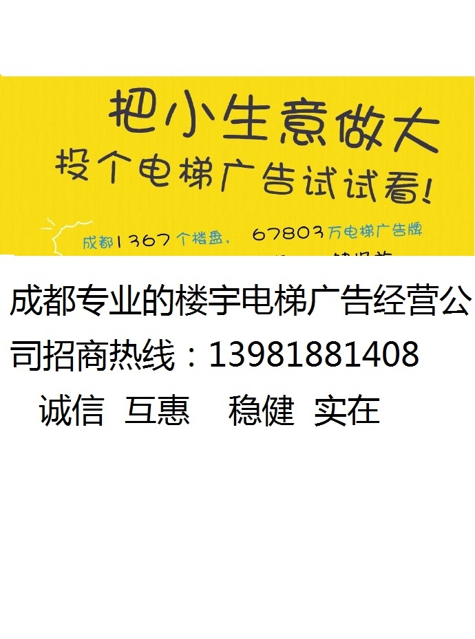 樓宇電梯廣告 ,不被拒絕的廣告 ,四川成都城區樓宇媒體電梯廣告 資源發布價格實惠專業傳媒公司服務咨詢:139-8188-1408,成都樓宇廣告 價格實在,成都電梯廣告 發布專業,成都樓宇電梯平面框架廣告 投放誠信合作放心合作的傳媒公司。