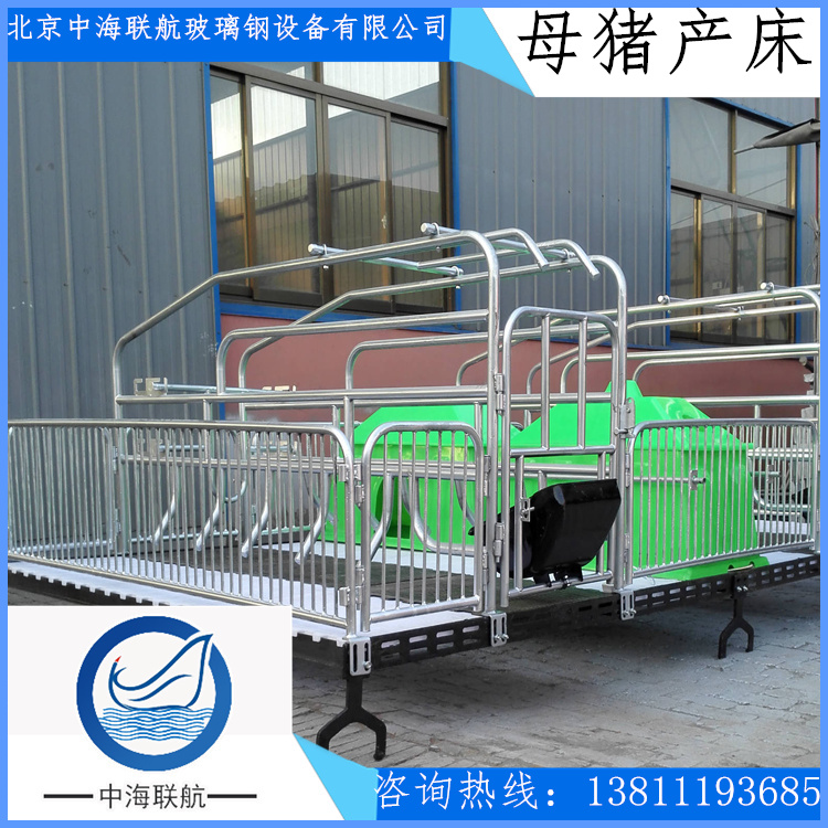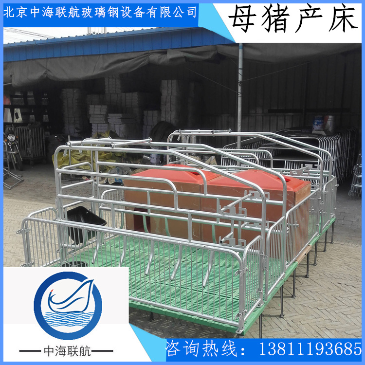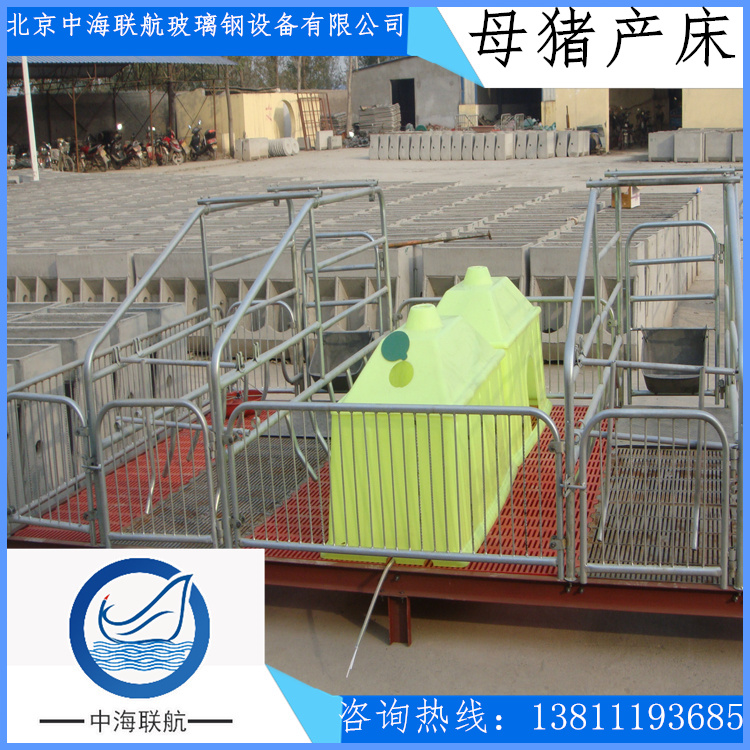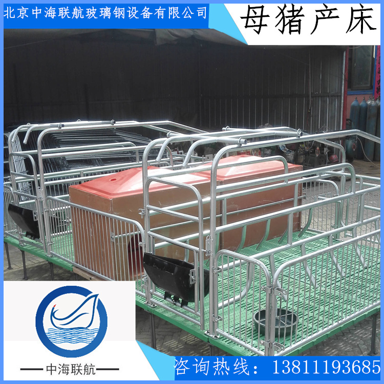 通常我們把母豬產床上安 裝有母豬限位架、仔豬圍欄、仔豬保溫箱、高架網床、母豬食槽和小豬補料槽等組成。母豬限位架的作用是限制母豬自由活動和躺臥方式,使其在躺臥時只能腹部著地伸出四肢。 增加了躺臥時間,為仔豬提供了逃避的機會,避免被壓死喝壓傷。保護仔豬,放止被母豬壓死;能為初生小豬提供30℃左右的小氣候和小環境;能提供良好的衛生條件,能防止活物積存和細菌的繁殖,減少仔豬疫病;便于對母豬和仔豬的管理。