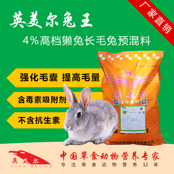 北京英美爾公司是一家專業化從事草食動物牛羊兔飼料營養研究的企業。公司針對長毛兔所需要的營養成分設計出純綠色不含抗生素 的專業長毛兔飼料添加劑 。節省草料,無需另加任何抗生素 類藥物,吃的少長的好 ,生長快, 防病抗病能力強。純綠色飼料添加劑 ,不含任何抗生素 。保障兔群長期健康生長。那我們首選北京英美爾4%兔專用復合預混料