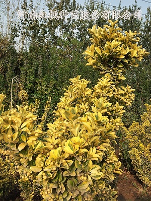 彩葉北海道黃楊(黃金甲 )作為北海道黃楊的一個變種,除繼承北海道黃楊耐寒、耐旱、耐鹽 堿 、耐重金屬、抗熱干風、抗紫外線等諸多優勢特征之外,葉片顏色發生變化,金黃色與碧綠色相間,黃色色塊大,色澤亮,無色變現象,葉片生長更為厚實緊簇,相比于原種,更具觀賞性。