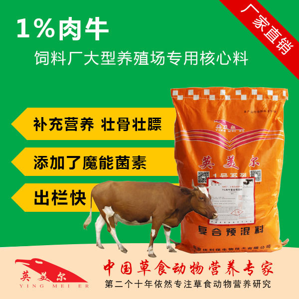 1%肉牛預混料是北京優利保公司根據肉牛的生長特點,針對肉牛生長緩慢,飼料利用率低等特點,專業研制出的一種新型肉牛預混料。小?焖俅偕L,長骨架!