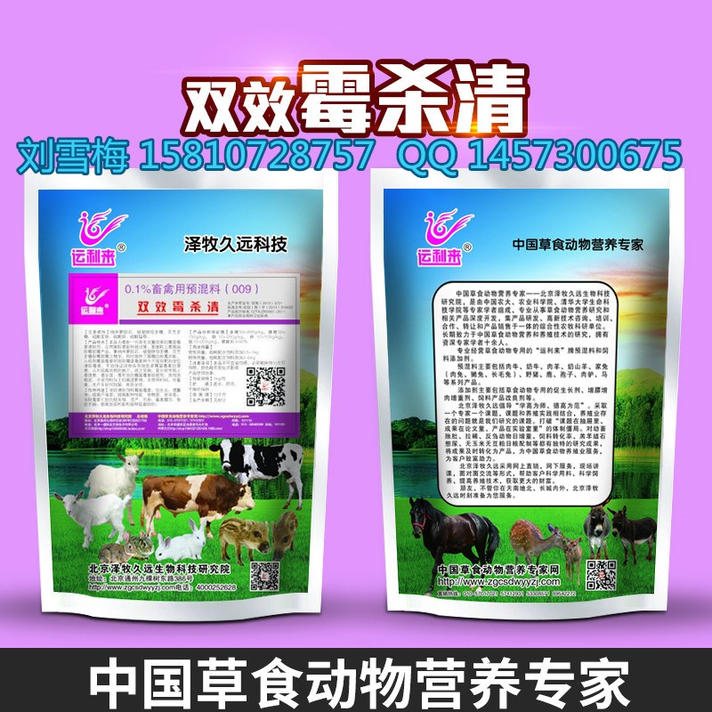 “雙效霉殺清”作為最新一代霉菌毒素 清除劑 毒素 到排除霉菌毒素 兩個方面雙靶向定位清除毒素 ,有效保證動物各系統免受霉產品,應用國際最新科技成果,是國際上最高端除霉脫霉產品。集納米蒙脫石、破壁酵母多糖、靈芝多糖除霉脫霉之精華。同時提供了寡糖的排毒功能,從吸附霉菌菌毒素 的侵害,從而提高動物抗病力,減少發病,是目前市場上最理想、最全面、最有效的霉菌毒素 吸附劑 。其性質穩定,不受飼料加工的高溫影響,無停用時間,對畜禽、水產無任何殘留,最具安 全性。