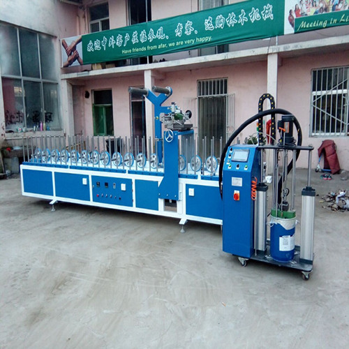 本機(jī)器由自動(dòng)送料、高壓水清洗、涂布親和劑 、型材預(yù)熱、自動(dòng)涂膠、覆保護(hù)膜等機(jī)構(gòu)組成.