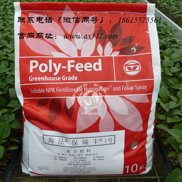 海法保瑞豐系列水溶肥是安 信種苗子公司山東安 信瑞寶農(nóng)資有限公司代理的以色列海法化學(xué)工業(yè)公司生產(chǎn)的大量元素 水溶肥,它含有各種配比的氮磷鉀 以及大量微量元素 且以復(fù)合螯合態(tài)存在,能迅速補(bǔ)充作物在生長(zhǎng)期所需要的大量元素 和微量元素 ,是您種植豐產(chǎn)的好幫手。