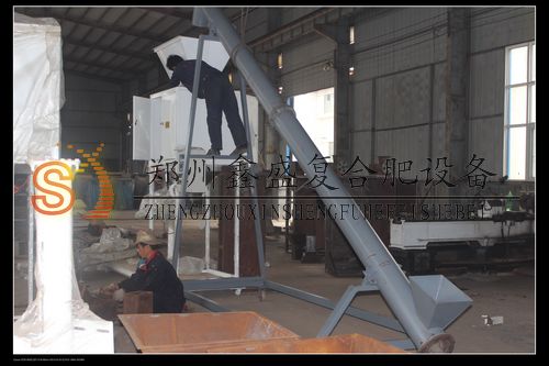 本裝置采用2臺攪拌機,操作按照配方將n、p、k、填加劑 、微量元素 等投入攪拌機,兩臺攪拌機交替作業,攪拌均勻后放到皮帶機上,既保證了配方的準確,又實現了連續生產。料斗進料口與地面平齊,降低了工人勞動強度。http://