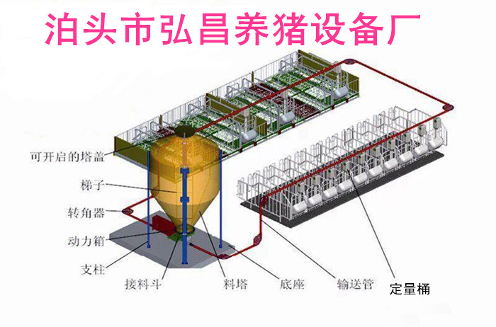 河北弘昌設計安 裝豬場自動化喂料設備養豬全自動供料系統