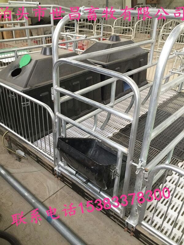 母豬產床又稱高培產仔床、高培分娩床、高床產仔欄,是一種新型的母豬保育產床,它適合于大、中、小型規模的養豬廠。床底采用鑄鐵加塑料或全塑料,邊框采用優質熱鍍鋅鋼管焊接而成。底部全部采用球墨鑄鐵框架,承重更好耐腐蝕耐酸 堿 更強。因高出地面所以具有一下特點,母豬產仔期間衛生條件優良,所排污物延漏縫板滲漏,保證了仔豬的衛生,免受感染。能有效避免母豬壓傷、擠傷豬仔,并且仔豬比地面仔豬增重快。是專為母豬分娩和哺乳仔豬而設計的專用欄圈。杜 絕了積水積尿積糞現象,讓母豬遠離骯臟潮濕的生活環境。母豬產床的分欄設計,杜 絕小豬被母豬壓死、踩死,并且由于母豬、小豬不接觸地面而有效的預防各種疾病的傳播。新的母豬產床設計,引領母豬產床發展方向,產床配件品質也有更大的提高。