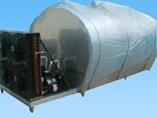 牛奶制冷罐分為整體式和分體式兩種。主要由罐體、攪拌器、制冷機(jī)組、微電腦控制箱四大部分組成。制冷機(jī)組分為單組制冷和雙組制冷。