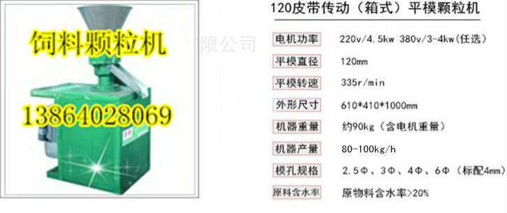 120型箱式飼料顆粒機:產量100-120kg/h,配套電機動力:2.2kw 4級