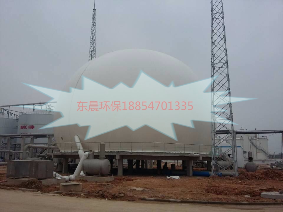 雙膜生物沼氣儲氣罐結構簡單無須過多維護,膜材均采用耐腐蝕的環保專用復合材料,主要由高強抗拉纖維、氣密性防腐涂層、表面涂層(pvdf)組成,具有防腐、抗老化、抗微生物及紫外線等功能,并且防火級別達到歐洲標準。