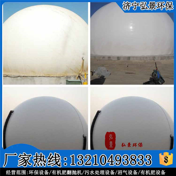內膜適用氣體恒壓輸出并對內膜起到保護作用,外膜截面與內膜及底膜的邊緣或發酵罐口連接。自動化集氣恒壓系統在內外膜之間形成一個恒定壓力的獨立儲存空間作為穩定氣柜和起到恒壓作用。也就是說用一個軟體球形作為儲氣柜,儲存的氣體容積變少控制設備就自動充空氣填補,儲存氣體增多安 全保護器就釋放空氣以平衡壓力。為不讓氣體混合,儲存的氣體與空氣之間使用內膜隔離開。