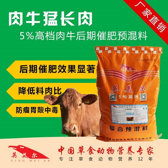 廠家直銷育肥牛飼料哪里找?哪家飼料效果最牛????英美爾牌肉牛復合預混料經反復試驗表明,能有效促進飼料的轉化利用率,加快肉牛育肥效果明顯。