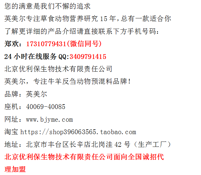 北京優(yōu)利保生物技術(shù)有限責(zé)任公司是一家專(zhuān)業(yè)做草食動(dòng)物預(yù)混料的飼料廠家;